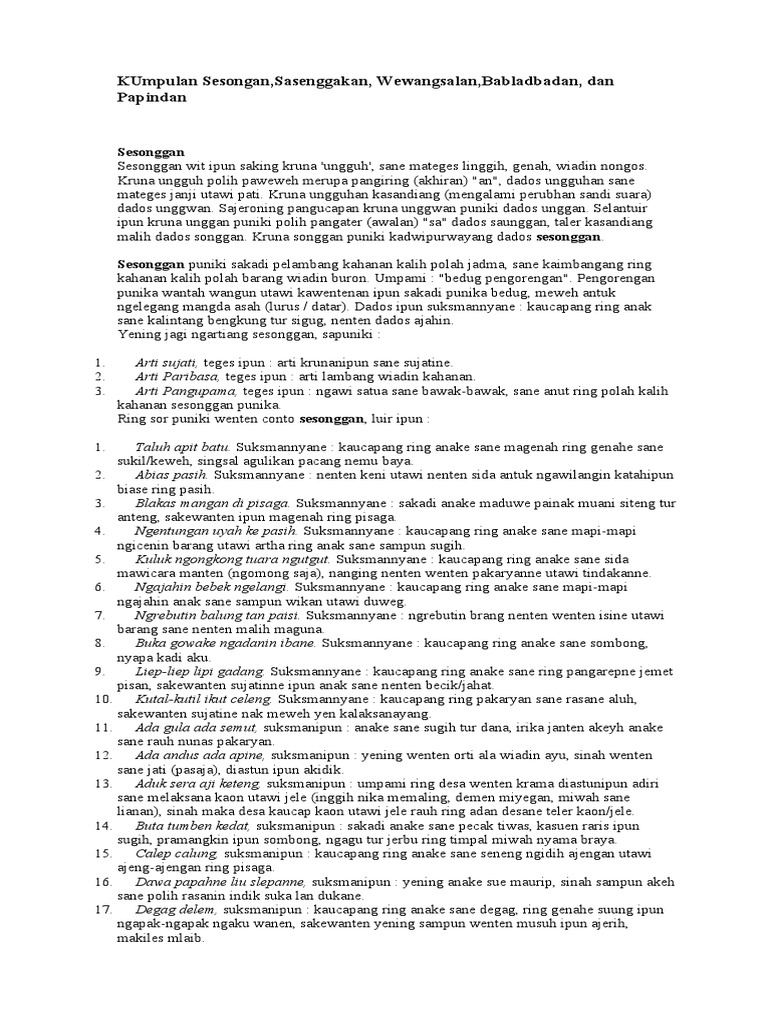 untuk "Contoh Sesenggakan / Rare Angon Paribasa Bahasa Bali Sesonggan Sesenggakan Bebladbadan Sesawangan Wewangsalan / Contoh kalimat rujukan atau contoh kata rujukan."