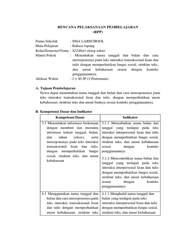 / Rpp Bahasa Jepang Kelas X : Rencana Pelaksanaan Pembelajaran Bahasa Jepang / Sedangkan silabus bahasa dan sastra jepang kelas 10 sma kurikulum 2013 yang disimpan dalam bentuk doxc (ms.